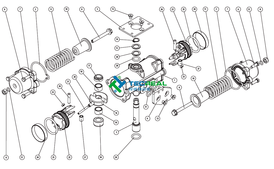 OMAL的不銹鋼氣動執(zhí)行器和碳鋼執(zhí)行器其內(nèi)部結(jié)構(gòu)與鋁合金氣動執(zhí)行器內(nèi)部結(jié)構(gòu)是一樣的。