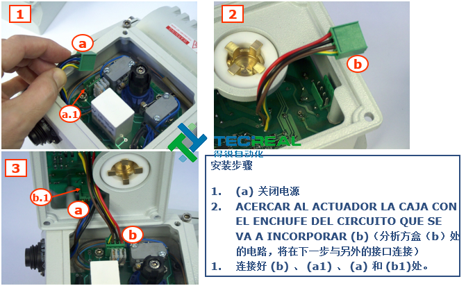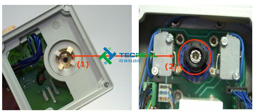 第一步:打開執(zhí)行器蓋子。 第二步:拆掉位置指示器。 第三步:將(2)中的傳輸軸與(1) 中的附件盒連接點連接好。 第四步: 使配件盒的孔對準(zhǔn)執(zhí)行器的孔,然后擰上螺絲。 第五步: 用凸輪調(diào)整...