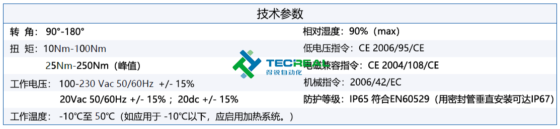具有外部可調機械限位,可提供開/關兩位置的微調可實現(xiàn)外部可視位置指示、緊急手動操作、電機過熱保護、過力矩保護。