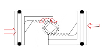 齒輪與齒條因為要嚙合所以其結(jié)構(gòu)為平行式結(jié)構(gòu),缸徑必須大于齒輪齒條分度圓之和,同時,因為要承受載荷沖擊,齒條厚度加大,因而結(jié)構(gòu)尺寸較大 |