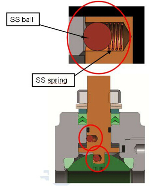 眾所周知,涂料是一種比較臟的介質(zhì),粘性強(qiáng),若不及時(shí)清理,會(huì)磨損閥門球體。OMAL MAGNUM系列球閥閥座的結(jié)構(gòu)設(shè)計(jì)有一刮刀唇形結(jié)構(gòu),其好處是自動(dòng)清潔球體表面的雜質(zhì),保持閥座的耐磨性。