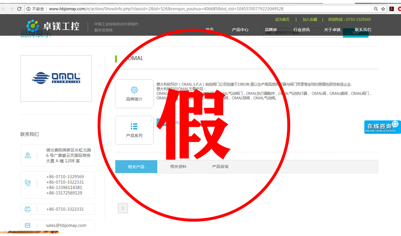 比如我們意大利OMAL的官網(wǎng)域名是www.omal.it,而有一家名叫上海相澤的公司,域名就是www.omal-sh.com。這讓我們意大利OMAL很是困惑,因?yàn)镺MAL自控閥門在中國國內(nèi),并沒有這么一家叫上海相澤的經(jīng)銷商,同樣的還有一家叫上海樊信的公司,域名是www.omal-valve.com,網(wǎng)站首頁就是我們意大利OMAL的企業(yè)logo,這難道不是赤裸裸的假冒?還有諸如名為威斯特工業(yè)設(shè)備有限公司、湖北卓鎂工控設(shè)備有限公司等公司,把OMAL產(chǎn)品廣告在百度上打的不亦樂乎。