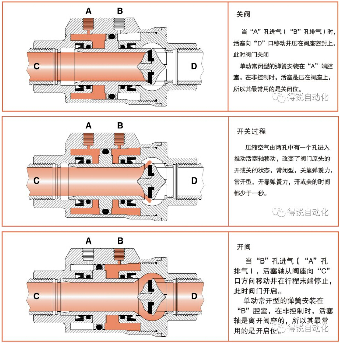 體積小、安裝方便:執(zhí)行機構與切斷元件合二為一,閥芯同時也是執(zhí)行機構的活塞,無任何外動元件,簡單可靠,可任意方向安裝。