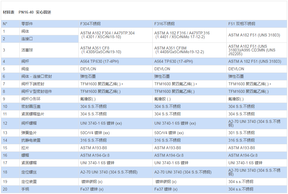 (**): 對于公稱通徑 ≤DN32 的閥門,僅能提供 CF8M材料的?
