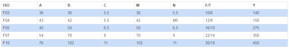 (**):閥門沒有符合ISO F04的連接口