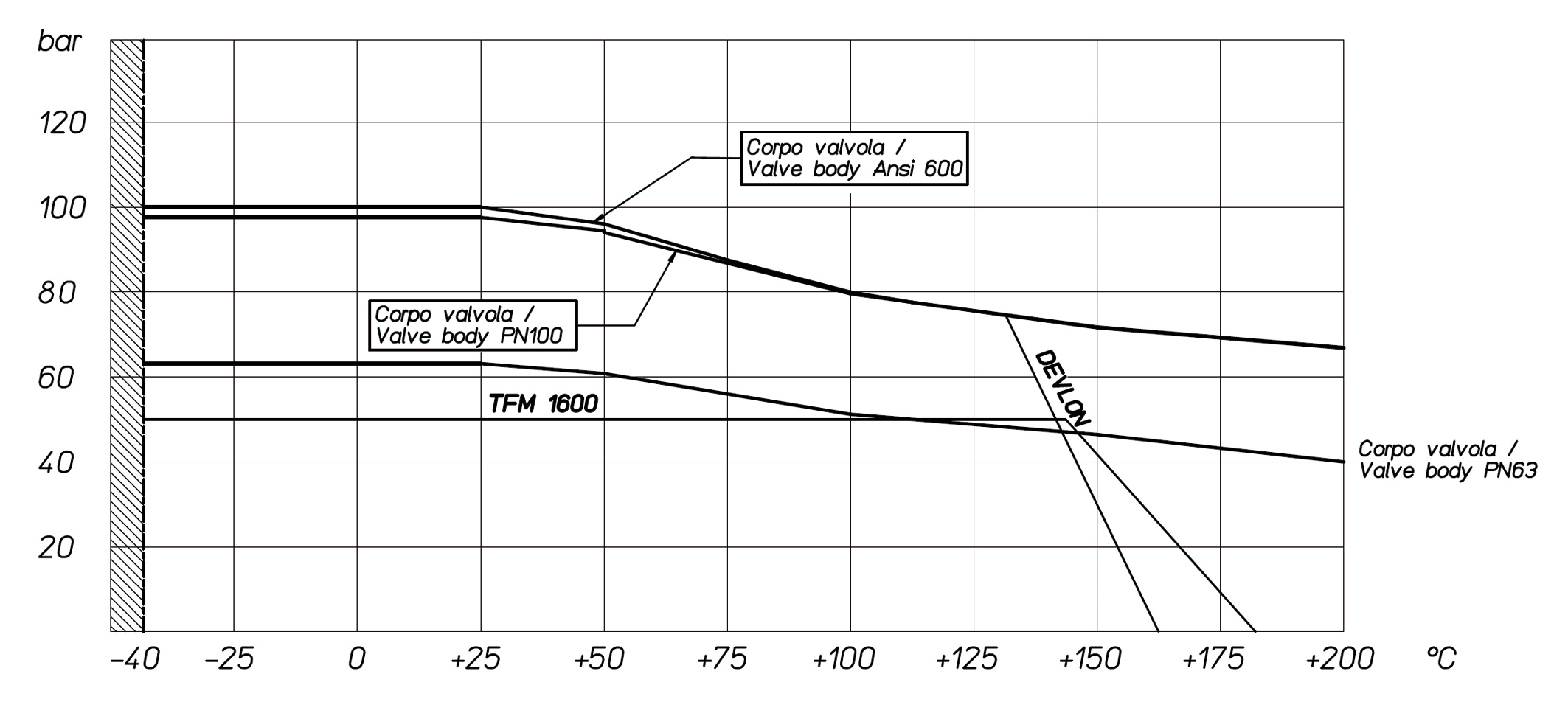 采用不銹鋼閥體的閥門壓力/溫度圖表