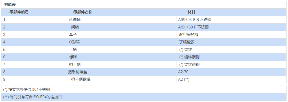 手柄、螺帽及閥桿彈簧采用不銹鋼